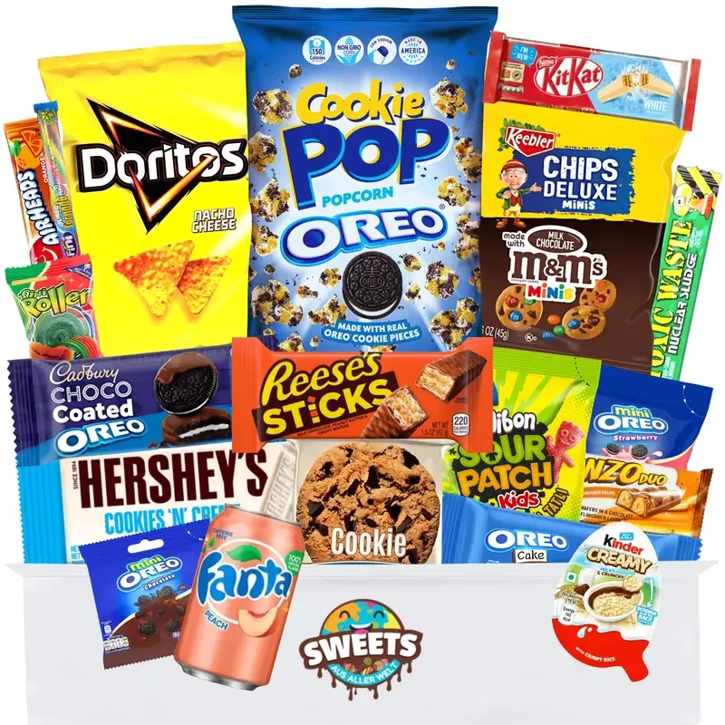 Tolle Zusammenstellung von Sweets aus aller Welt, besonders die USA-Snacks top.